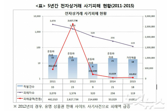 전자상거래 시장의 급성장으로 사기 피해도 늘어나 지난 5년간 서울시전자상거래센터에 접수된 전자상거래 사기 피해자는 5541명, 피해금액은 34억 2100만 원에 이른다.