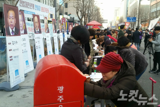 이날 금남로 일대에서는 '헌법재판소 재판관들에게 연하장 보내기 행사'가 열려 눈길을 끌었다.