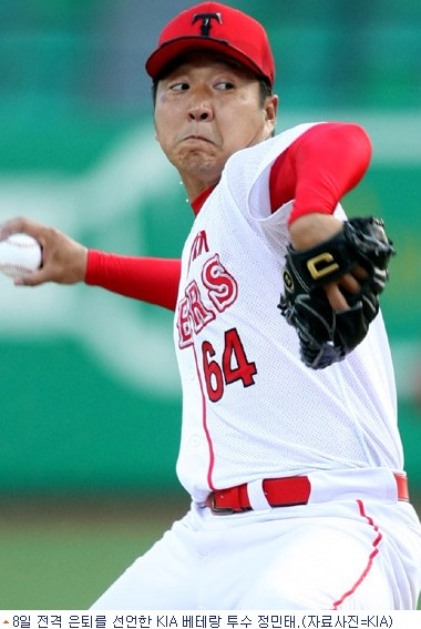 KIA는 8일 "정민태가 오후 김조호 KIA 단장과 면담을 갖고 은퇴를 최종결정했다"고 밝혔다. 이어 "1군 합류를 통보받은 7일 조범현 감독과도 만나 은퇴 의사와 배경을 설명했다"고 덧붙였다.