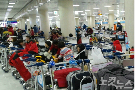 예기치 못한 공항마비 사태에 항공기 운항이 전면 중단되면서 미처 숙소를 잡지 못해 제주공항 안에서 머물 수밖에 없는 6000여 명의 체류객은 원치 않는 노숙을 이어갔다.
