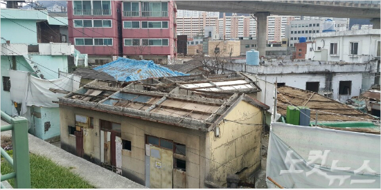 부산 사상구 주례2구역에서 재개발을 둘러싼 주민들 간 법적다툼이 철거 갈등과 석면 공포를 야기하고 있다.(사진=부산CBS 강민정 기자)