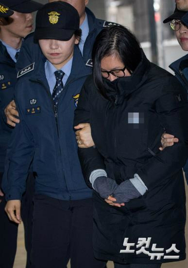직권남용 권리행사 방해 및 강요 혐의로 구속 기소된 장시호 씨가 2일 오후 서울 강남구 대치동 특검 사무실에 조사를 받기 위해 출석하고 있다. (사진=이한형 기자)