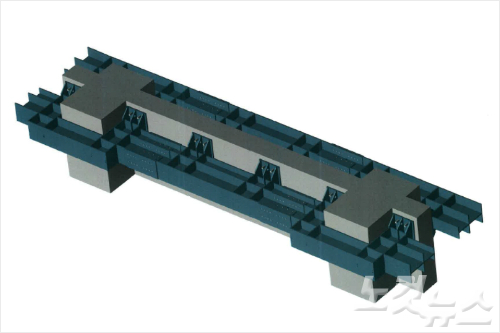 공사는 하나로 벽체에 구멍을 뚫어 벽을 관통하는 볼트를 넣고 하이브리드 트러스라고 불리는 내진 보강 철 구조물을 장착하는 방식으로 진행이 됐다. (그림=한국원자력연구원 제공)