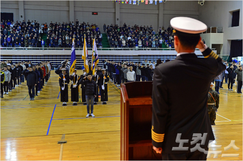 이날 가입교식을 주관한 양용모 생도대장(준장 진)은 “치열한 경쟁을 뚫고 이 자리에 선 75기 가입교생 여러분을 진심으로 환영한다”며, “가입교생들의 뜨거운 함성과 의지가 이곳 옥포만을 가득 채워주기를 기대한다”라고 말했다.