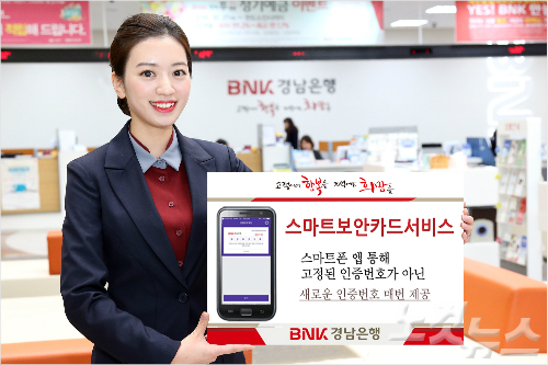 BNK경남은행이 스마트뱅킹·인터넷뱅킹·텔레뱅킹 등 전자금융거래 이용 고객들의 편의와 보안성 강화를 위해 '스마트보안카드서비스'를 시행하고 있다.