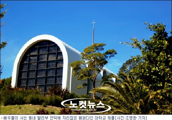 여러분은 지중해성 건축양식이 뭔지 아세요? 빨간 벽돌지붕, 하얀 스타코 벽, 그리고 틴티드 윈도우, 그러니까 커튼 대신 엷은 종이를 붙여놓은 창문이 지중해성 건축 양식의 특징이라고 합니다. 이 페퍼다인 대학의 건물들이 대개 지중해성 양식이라고 합니다.
