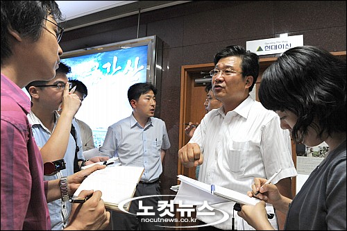 금강산 관광객 박모(53세) 여인이 장전항 북측구역내 기생바위와 해수욕장 중간지점에서 북측 초병의 총격을 받아 사망한 가운데 11일 오후 서울 현대그룹 계동사옥 12층에 위치한 현대아산 사무실 앞에서 회사 관계자가 현 상황에 대하여 이야기 하고 있다.
