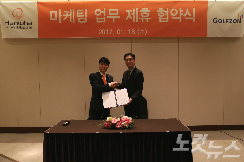 (주)골프존이 (주)한화호텔앤드리조트와 골프서비스사업 관련 ‘O2O(Online to offline)’ 공동 마케팅을 위한 MOU를 체결했다고 19일 밝혔다.