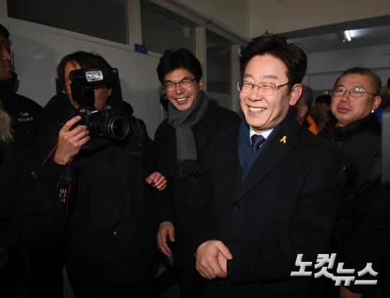 이재명 성남시장이 23일 오전 경기도 성남시 중원구 오리엔트 시계공장에서 대선 출마선언을 마친 후 자신이 근무했던 공장을 둘러보고 있다