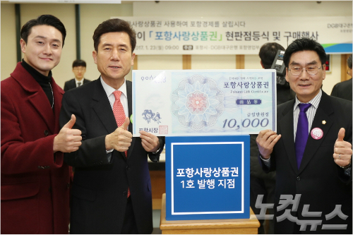 이강덕 포항시장은 "포항사랑 상품권 발행으로 자금역외 유출방지, 시민소비 증대, 가계수입 증가 등 지역경제에 새 활력을 불어넣게 될 것"이라며 "시민들이 체감할 수 있는 민생경제 정책을 펼쳐나가는데 모든 노력을 기울이겠다."고 말했다.