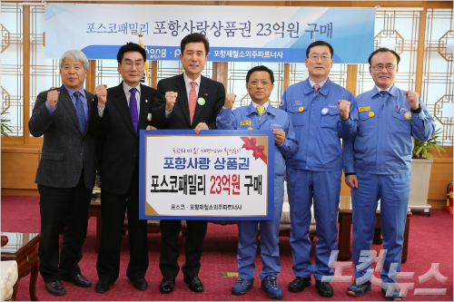 한편, 포스코 포항제철소(소장 김학동)가 이날 포항시청을 방문해 '포항사랑 상품권' 구매를 위한 협약식을 가졌다.