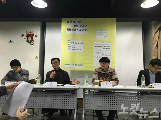전국언론노조와 땡땡책협동조합은 23일 마포구에서 '출판약자들이 함께 살아날 출판생태계의 내일'을 주제로 송인서적 부도 이후, 지속가능한 출판을 이야기하는 집답회를 열었다. 이 자리에는 4명의 발표자와 30여 명의 출판 관계들이 참석했다.