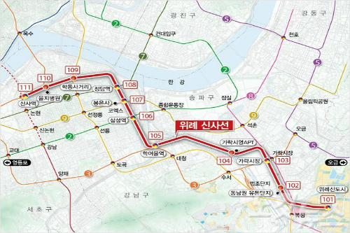 서울시는 위례신사선 사업을 이르면 2019년 착공해 2024년 개통을 목표로 하고 있다.