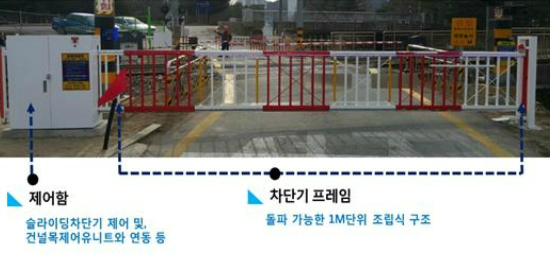 기존 봉 형태의 차단기의 경우 봉 옆으로 보행자가 진입하거나 차량이 봉을 치고 건널목으로 들어가면서 사고가 발생하는 점에 착안해 제작된 차단기는 슬라이딩 방식의 전면 밀폐형으로 보행자와 차량 진입을 원천 봉쇄할 수 있는 게 특징이다.