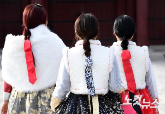 설날인 28일 오후 시민들과 관광객들이 서울 종로구 경복궁을 찾아 나들이를 즐기고 있다.