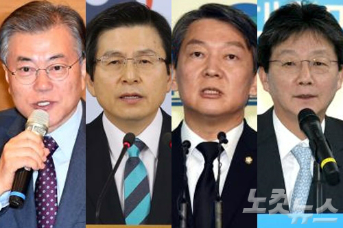 (왼쪽부터) 문재인 전 더불어민주당 대표, 황교안 대통령 권한대행 국무총리, 안철수 전 국민의당 대표, 유승민 바른정당 의원 (사진=자료사진)