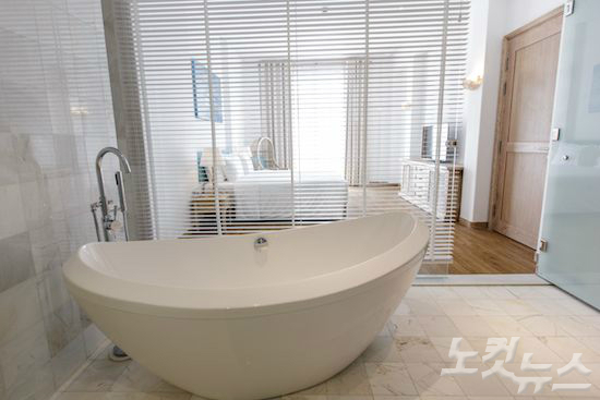 킹사이즈의 침대를 갖춘 별도의 침실, 안락한 소파와 작은 다이닝 테이블의 거실 그리고 개별적인 발코니가 갖춰진 넓은 공간이 여러분의 편안한 휴식을 돕는다. 산토린 스위트는 넓직한 대리석 욕실 그리고 별도의 욕조를 갖추고 있어 나만의 스파를 즐길 수 있다. 아름답고 완벽한 스위트에 머물며 베트남에서 느낄 수 있는 산토리니를 만끽할 수 있는 객실이다.