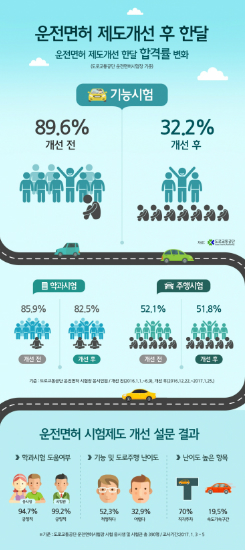 학과시험과 주행시험의 합격률은 각각 85.9%와 52.1%로 시험제도 개편 전 82.5%와 51.8%와 큰 차이를 보이지 않았다
