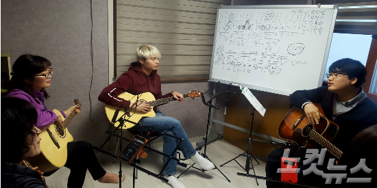 여수문화파출소에서 '통기타와 함께하는 낭만여행' 프로그램이 진행되고 있다. (사진=전남CBS 김유리 아나운서)