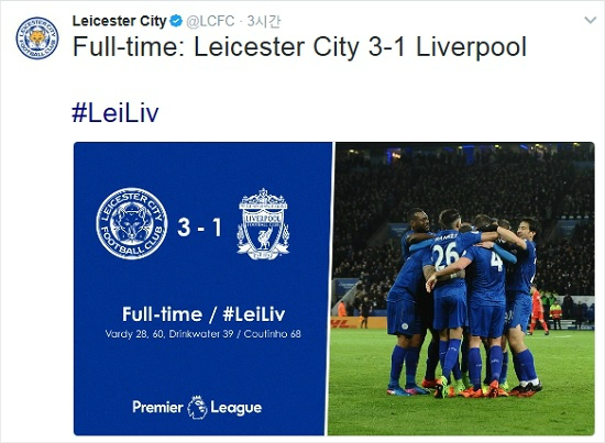 지난 시즌 잉글랜드 프리미어리그에서 깜짝 우승한 뒤 올 시즌 부진했던 레스터 시티는 클라우디오 라니에리 감독을 경질하고 치른 첫 번째 경기에서 리버풀을 꺾는 '작은 이변'을 선보였다.(사진=레스터 시티 공식 트위터 갈무리)