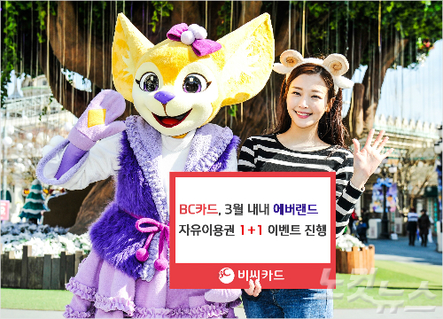 BC카드는 3월 한달 동안 에버랜드 자유이용권을 구매하는 고객들을 위한 '1+1 이벤트'를 진행한다고 28일 밝혔다.