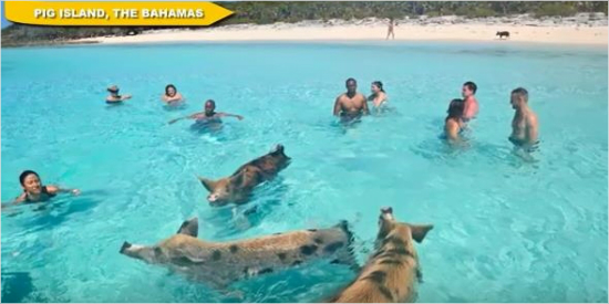 카리브해 섬나라 바하마에 인접한 무인도 '돼지섬'은 세계적인 관광명소다. 돼지들만 서식하는 이 곳에서 관광객들은 돼지와 함께 헤엄치고, 배에 탄 채 섬을 구경한다.