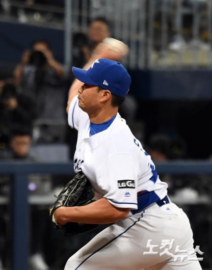 WBC 한국대표팀 오승환이 6일 오후 서울 고척스카이돔에서 열린 '2017 WBC 서울라운드' 개막전 이스라엘과의 경기 8회초 2사 만루 상황에서 이스라엘 대표팀 버챔을 삼진으로 잡아내고 있다.