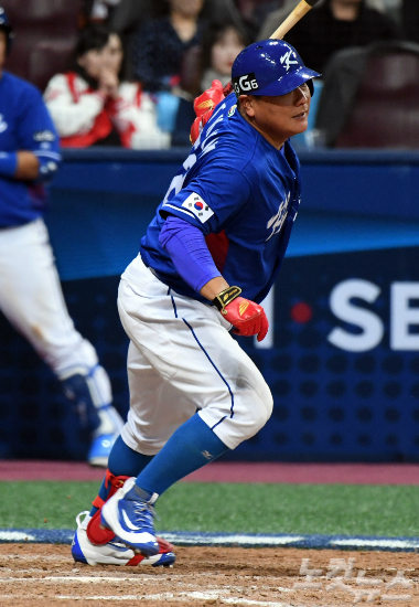 잠잠했던 이대호도 마침내 대회 첫 타점을 신고했다. 이대호는 6-3으로 쫓기던 4회초 1사 1, 2루 상황에서 대만의 세 번째 투수 판웨이룬의 초구를 공략해 1타점 적시 2루타를 때려냈다. 2회초 투수가 던진 공에 머리를 맞는 아찔한 상황을 겪기도 했던 이대호지만 계속해서 경기에 나서며 원하는 결과를 만들어냈다. 손아섭의 희생플라이로 1점을 더 보탠 한국은 8-3까지 앞서갔다.