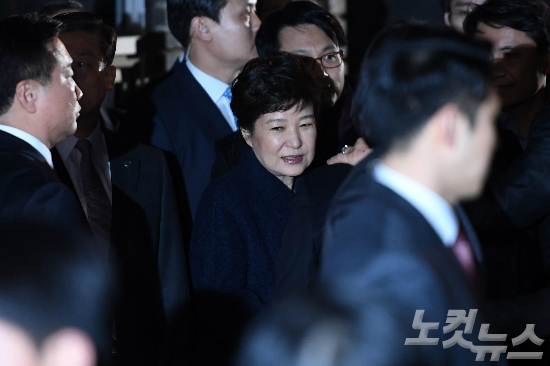 박근혜 전 대통령은 12일 밤 서울 강남구 삼성동 사저에 도착해 민경욱 자유한국당 의원(전 청와대 대변인)을 통해 헌법재판소의 파면 결정에 대한 입장을 밝혔다.