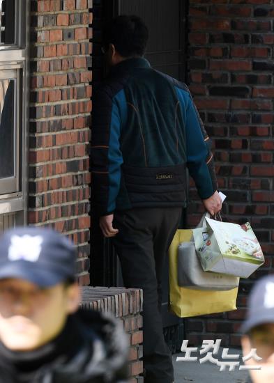 검찰이 박근혜 전 대통령에게 피의자 신분으로 검찰청사에 나와 조사를 받으라고 공식 통보한 15일 오후 서울 강남구 삼성동 박 전 대통령 자택으로 음식이 반입되고 있다.