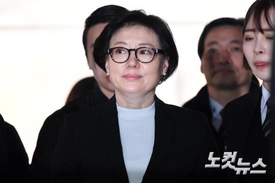 롯데그룹 신격호 총괄회장(95)의 사실혼 배우자 서미경 씨가 20일 오후 서울중앙지법에서 열린 롯데그룹 총수 일가의 경영비리 첫 재판에 출석하고 있다.
