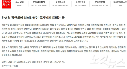 문학과 지성사에 올라온 한병철 강연회 사과문