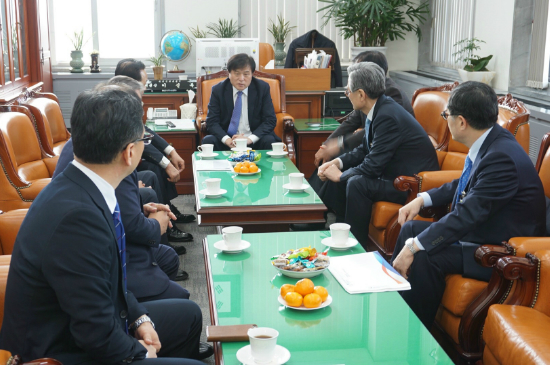대우조선해양 협력사 대표자들이 21일 이진복 국회 정무위원장을 방문해 호소문을 전달했다. (사진=대우조선해양 제공)
