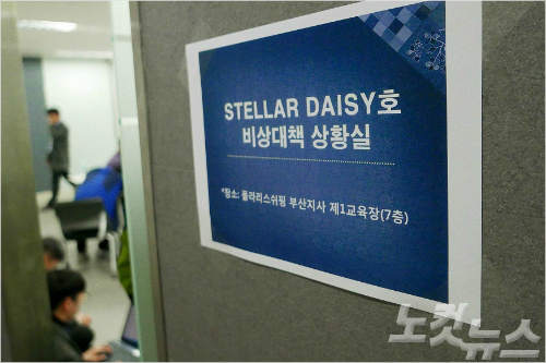 부산 중구 '폴라리스 쉬핑' 부산지사에 차려진 스텔라데이지호 실종 사고 대책본부. (사진=송호재 기자)