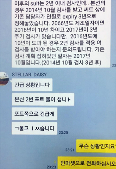 - 10년 전 중국에서 선체 외판 수리, 용접이 잘 안 되어 균열 발생했을 확률 있어