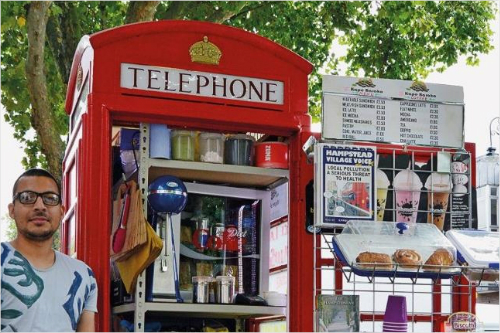 우마르 칼리는 런던 근교 핸스테드 히스 공원 안에 공중전화 박스를 활용한 카페 Kape Barako를 만들었다. 독특한 외관의 카페는 인스타그램 사진명소로 거듭났다.