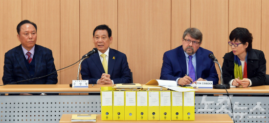 미국 정부의 5 .18 관련 기밀문서를 광주에 기증한 팀 셔록은 다음달 31일까지 두 달간 광주에 머물며 5·18 연구자 등과 함께 기증자료 분석·토론 등 5.18 진실규명 작업에 참여한다. 윤장현 광주시장, 팀 셔록 광주 연구방문 기자회견 참석(사진=광주광역시 제공)