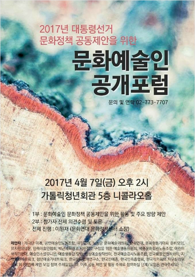 문화연대를 비롯해 20여 단체가 공동 제안한 '2017년 대통령선거 문화정책 공동제안을 위한 문화예술인 공개 포럼'이다.