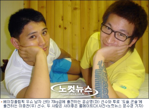 룸메이트이자 ''방쫄''인 이종찬(24) 선수에게 "윤순명 선수가 잘 해주느냐?고 슬쩍 묻자 "저희는 정말 잘 지내요"라며 활짝 웃는다. 사진을 찍기 위해 서로 밀착하자 푸훗~ 동시에 웃음을 터뜨리는 모습이 친형제 같다.