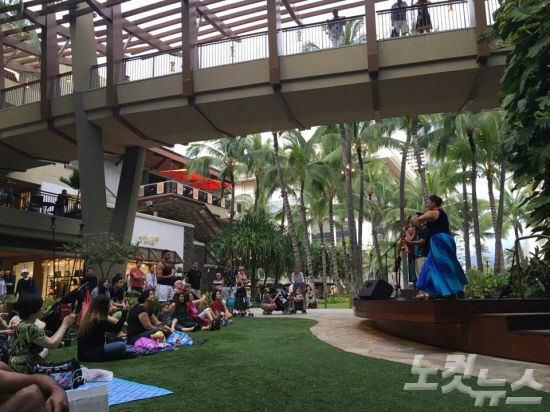 토끼와 무료 기념 촬영 등 부활절 행사뿐 아니라 각종 무료 액티비티가 가득한 로얄 하와이안 쇼핑 센터. (사진=허니문리조트 제공)
