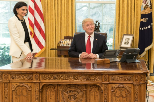 트럼프 집무실 책상 위 ‘빨간 단추’…누르면 콜라 대령