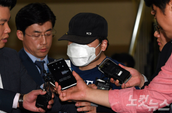 바른정당 유승민 대선후보의 딸을 강제추행한 혐의로 이모(30)씨가 5일 오후 서울 마포경찰서에서 조사를 받은 후 경찰서를 떠나고 있다. 이씨는 지난 4일 홍익대 부근 유세현장에서 유 후보의 딸 유담 씨의 어깨에 팔을 두르고 얼굴을 밀착한 채 혀를 내미는 포즈로 사진을 찍은 뒤 이를 온라인 커뮤니티 등에 올린 혐의를 받고 있다. (사진=황진환 기자)