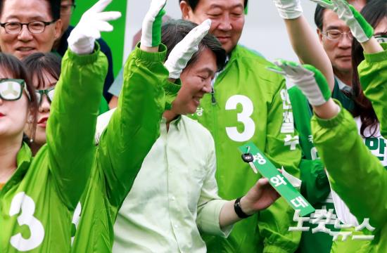 국민의당 안철수 후보가 6일 오후 광주 금남로거리 집중 유세를 마치며 한 지지자로부터 받은 '청와대'라는 문구가 적힌 열쇠를 들고 있다.