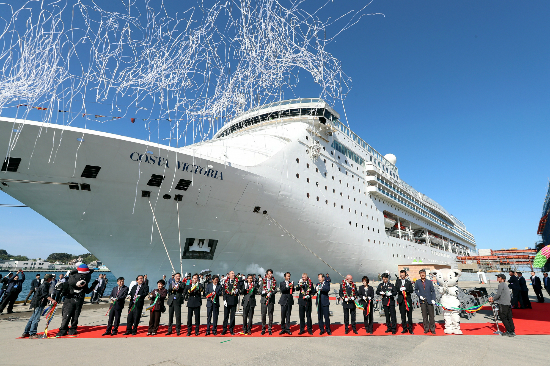 지난 5월 1일 강원 속초항에서 열린 7만 5천톤급 크루즈 코스타 빅토리아호 취항식. (사진=강원도 제공)