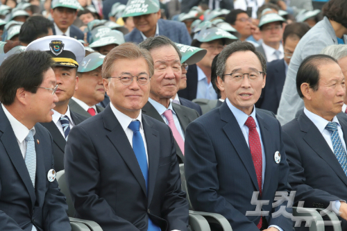 31일 전북 군산시 새만금 신시광장에서 열린 '제 22회 바다의 날' 기념식에 참석한 문재인 대통령이 기념사 도중 전북과 관련한 멘트가 이어지자 행사에 참석한 관중들이 함성과 함께 힘찬 박수를 보내기 시작했다.