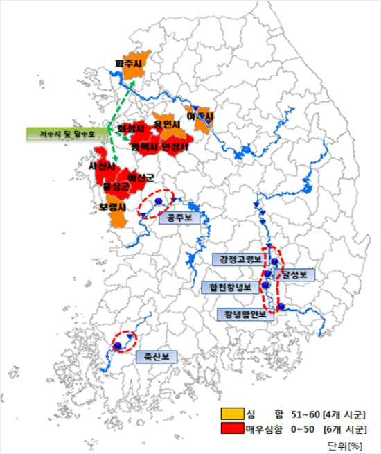 실제로 이들 보가 위치한 강의 본류에 물을 내려보내는 상류의 다목적댐 저수율은 예년 대비 104% 수준으로 양호한 상황이다.