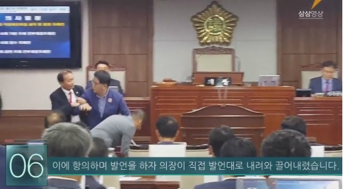 김 의원이 이에도 굴복하지 않고 발언을 계속해가자, 임 의장은 의회 소속 공무원을 시켜 '김 의원을 발언대에서 끌어내릴 것'을 수차례 지시했다.