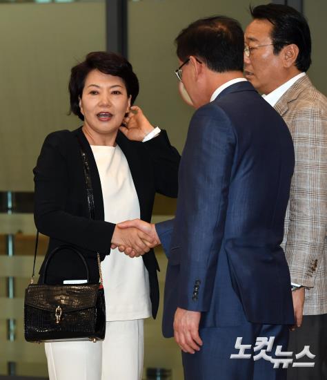 자유한국당 대선 후보였던 홍준표 전 경남지사의 아내 이순삼 씨가 4일 오후 인천국제공항을 통해 귀국하고 있다.