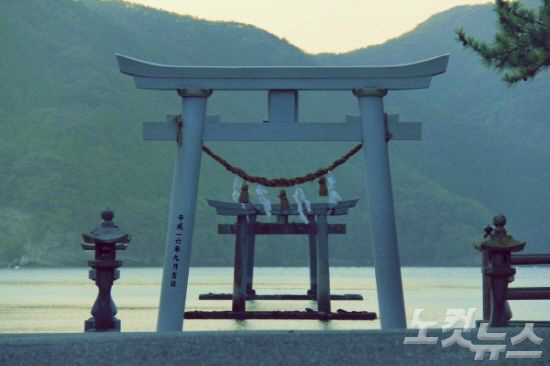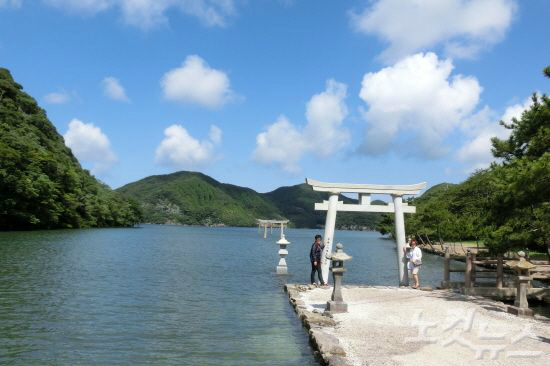 아소만의 잔잔한 파도와 어우러져 신화의 세계를 연상케 하는 와타즈미 신사. (사진=투어2000(투어이천) 제공)