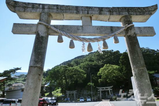 ◇ 와타즈미 신사와타즈미신사는 히코호호 데미노코토와 토요타마 히메라는 두 신을 모시고 있는 해궁으로 옛 부터 용궁전설이 전해져 오고 있다. 본전 정면에서 아소만 바다에 서있는 토리이는 아소만의 잔잔한 파도와 어우러져 신화의 세계를 연상케 한다. 밀물이 되면 2m 가량이 바닷물에 잠겨 신비로운 분위기를 자아낸다.